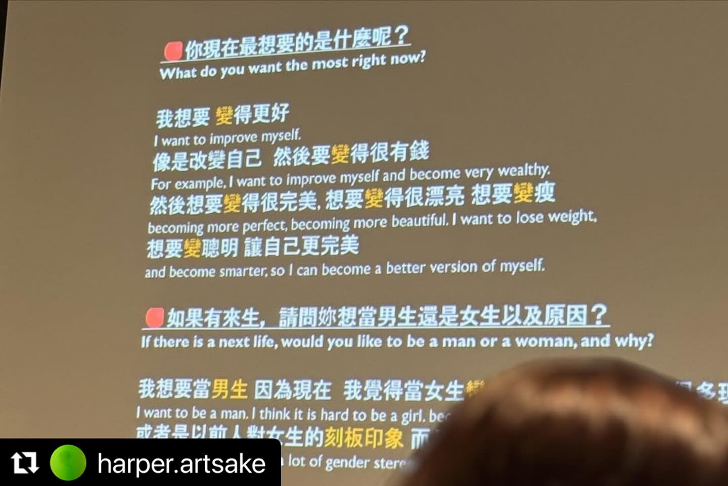 今回の展覧会のエグゼクティブディレクターである王怡真さん @harper.artsake が、わざわざ丁寧にこの講座への感想を書いてくださいました。